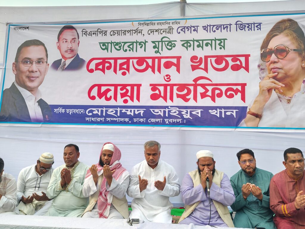 অনুষ্ঠানে আলেম-ওলামা, মাদ্রাসার ছাত্র, স্থানীয় জনগণসহ বিএনপি ও অঙ্গসংগঠনের নেতাকর্মীরা অংশ নেন। কুরআন তিলাওয়াত ও মিলাদ মাহফিলে বেগম খালেদা জিয়ার দ্রুত আরোগ্য কামনা করে বিশেষ মুনাজাত করা হয়।আয়োজক ঢাকা জেলা যুবদলের সাধারণ সম্পাদক মোহাম্মদ আইয়ুব খান বলেন, “দেশনেত্রী বেগম খালেদা জিয়া এই দেশের গণতন্ত্র, উন্নয়ন ও জাতীয় ঐক্যের প্রতীক। তার সুস্থতা শুধু দলের জন্য নয়, দেশ ও জাতির ভবিষ্যতের জন্য অত্যন্ত গুরুত্বপূর্ণ।”তিনি আরো বলেন, “দেশ এখন সুষ্ঠু নির্বাচনের প্রান্তে দাঁড়িয়ে। যারাই নির্বাচন ঠেকানোর অপচেষ্টা করবে, বিএনপির ভারপ্রাপ্ত চেয়ারম্যান তারেক রহমানের নেতৃত্বে তা প্রতিহত করা হবে। এজন্য জাতীয়তাবাদী সব শক্তিকে ঐক্যবদ্ধ থাকতে হবে।”দোয়া মাহফিল শেষে উপস্থিত মাদ্রাসা শিক্ষার্থীদের মাঝে খাবার বিতরণ করা হয়।আয়োজকরা জানিয়েছেন, বেগম খালেদা জিয়ার সুস্থতা কামনায় এ ধরনের কর্মসূচি আগামীতেও অব্যাহত থাকবে। ইতোমধ্যে দেশজুড়ে বিএনপি ও অঙ্গসংগঠনের উদ্যোগে বিভিন্ন স্থানে অনুরূপ দোয়া মাহফিল অনুষ্ঠিত হচ্ছে।